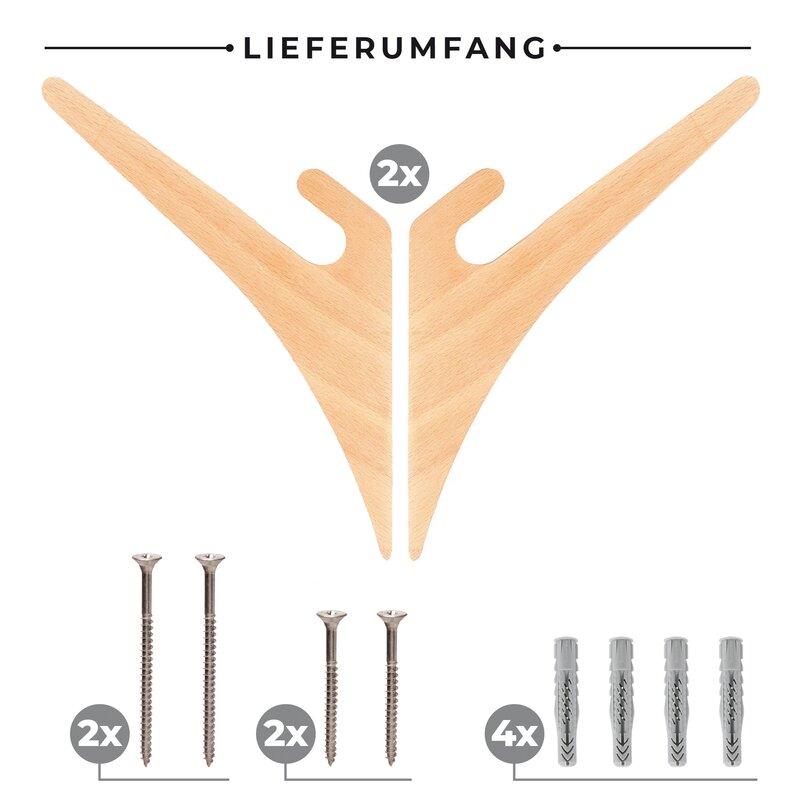 The wall rack is quickly installed with only four screws. 4 rawlplugs and 4 screws are included in the delivery. Trough that you can easily choose the distance of the two racks, they fit for almost every board.